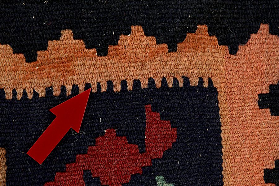 Abrash: Поради разликите в маслеността и количеството на солите съдържащи се във вълната по време на боядисването ѝ тя има различна попивност на боя. Преди процеса на изработката това не е толкова видно, но по време на тъкането се получават ивици с различни оттенъци на един и същ цвят. Това се нарича Абраш (Abrash) – което на персийски означава облаче – и е признак за естествеността и автентичността на вълната, при която не са използвани никакви химични средства. Примери