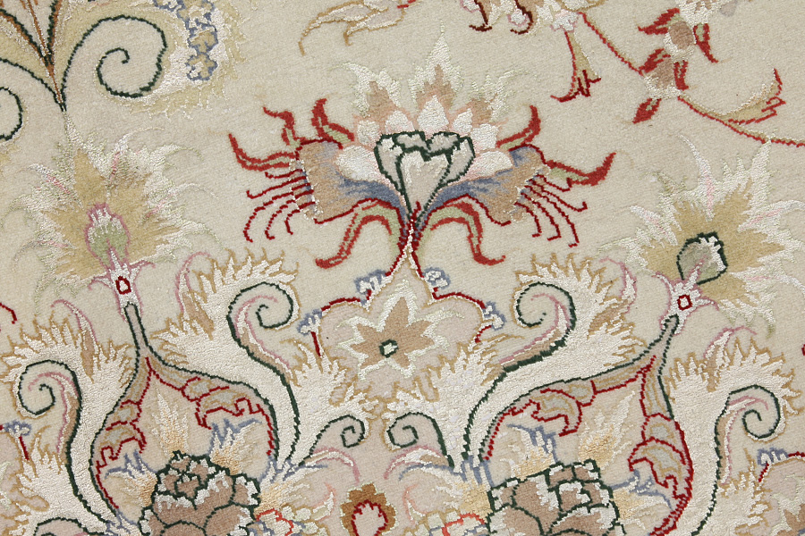 Връзвани килими Tabriz: Табриз (Tabriz) е областният град на провинцията Азербайджан в югозападен Иран. До края на епохата на керваните е бил главен търговски център за изработка и продажба на килими. Оттук Западът се е снабдявал с шедьоврите изработени от известни и опитни килимари. Високото им качество ги прославя на международните пазари. Създават се множество работилници за ръчно изработени килими, където са се правят нови и стари модели с изключително голяма гъстота на възлите от материали с отлично качество. Коприната и тънката качествена вълна правят килимите висококачествени. Никой друг град в Персия не е произвел толкова големи и като обем и като разнообразие количества килими. С медальон или без, моделите им са преизпълнени от въображение и неповторимост. Цветя, сцени и строфи от стихотворения красят килимите. Доминиращи са бежовото, синьото и червеното.
