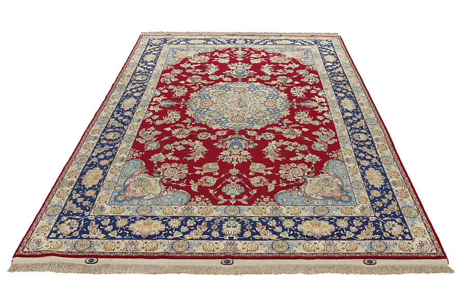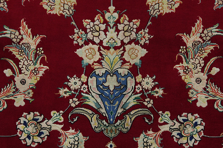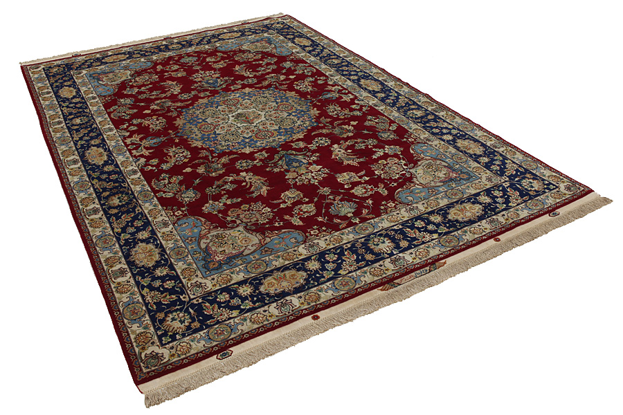 Връзвани килими Tabriz: Табриз (Tabriz) е областният град на провинцията Азербайджан в югозападен Иран. До края на епохата на керваните е бил главен търговски център за изработка и продажба на килими. Оттук Западът се е снабдявал с шедьоврите изработени от известни и опитни килимари. Високото им качество ги прославя на международните пазари. Създават се множество работилници за ръчно изработени килими, където са се правят нови и стари модели с изключително голяма гъстота на възлите от материали с отлично качество. Коприната и тънката качествена вълна правят килимите висококачествени. Никой друг град в Персия не е произвел толкова големи и като обем и като разнообразие количества килими. С медальон или без, моделите им са преизпълнени от въображение и неповторимост. Цветя, сцени и строфи от стихотворения красят килимите. Доминиращи са бежовото, синьото и червеното.