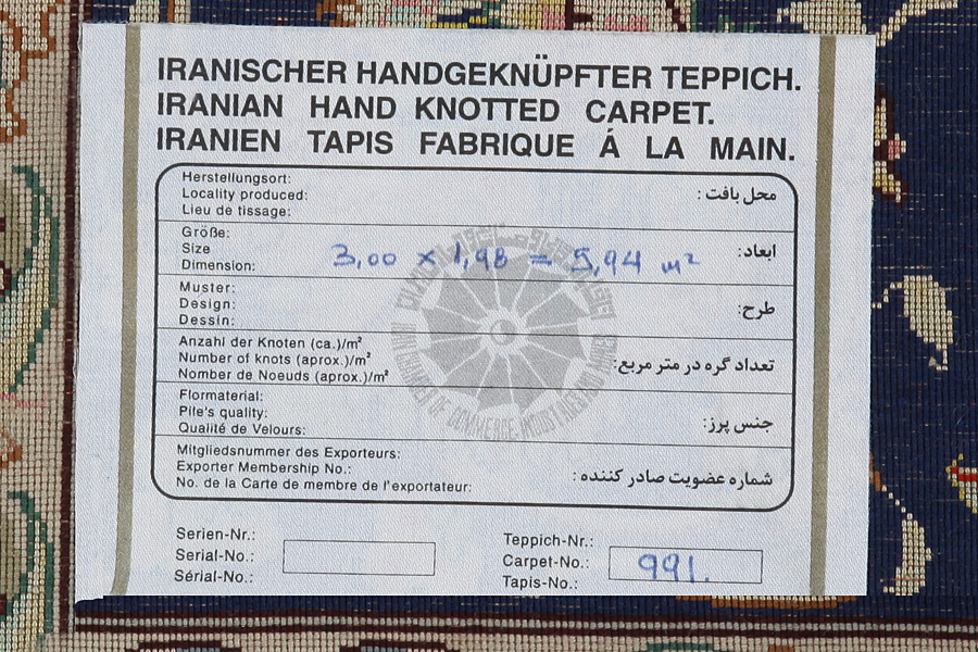 Tabriz Персийски връзван килим 300x198